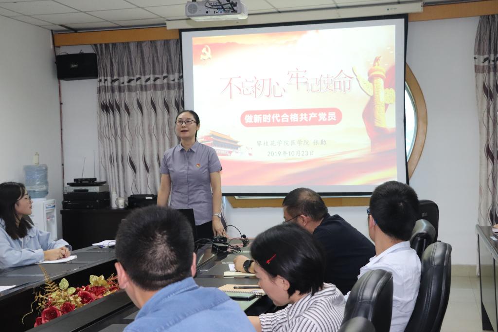 10月23日,医学院党委书记张勤在西苑三楼会议室以“做新时代合格的共产党”为题讲授“不忘初心、牢记使命”主题教育专题党课,师生党员、预备党员、入党积极分子42人参加了学习活动。张勤结合“不忘初心、牢记使命”主题教育学习体会,讲了四个问题。一是从党史的角度,沿着习近平总书记红色足迹,通过回顾中共一大,长征的出发点、转折点和会师点,七届二中全会以及总书记上任以后参观国家博物馆《复兴之路》等重大历史事件,对中国共产党和中国共产党人的初心和使命进行了追本溯源;二是阐明初心和使命是激励中国共产党人不断前进的动力,只有不忘初心才能不迷失方向,只有不忘初心才能始终找到正确的前进道路;三是把新时代对合格共产党员的要求进行了分类梳理和明确;四是就如何做好新时代合格的共产党员为师生党员指明了路径,提出了要求。