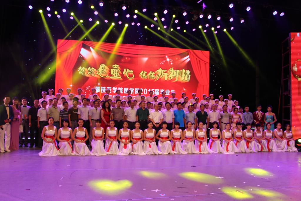 5 月17日晚,医学院“悠悠悬壶心,依依折柳情”2015届毕业生暨5.12国际护士节晚会在学生会堂隆重举行。攀枝花学院党委书记肖立军、党委副书记李尚志、副校长伍维根、刘立新、何永斌、石维富,攀枝花市教育局副局长田龙,攀枝花市卫生局党委副书记张学东、副局长雷武岷,攀枝花市级各大医院领导、四个区县卫生局局长及医院院长、攀枝花学院办公室、宣传部、学生处、校团委、招就处、通识学院领导和在校学生一千余人共同观看了晚会。