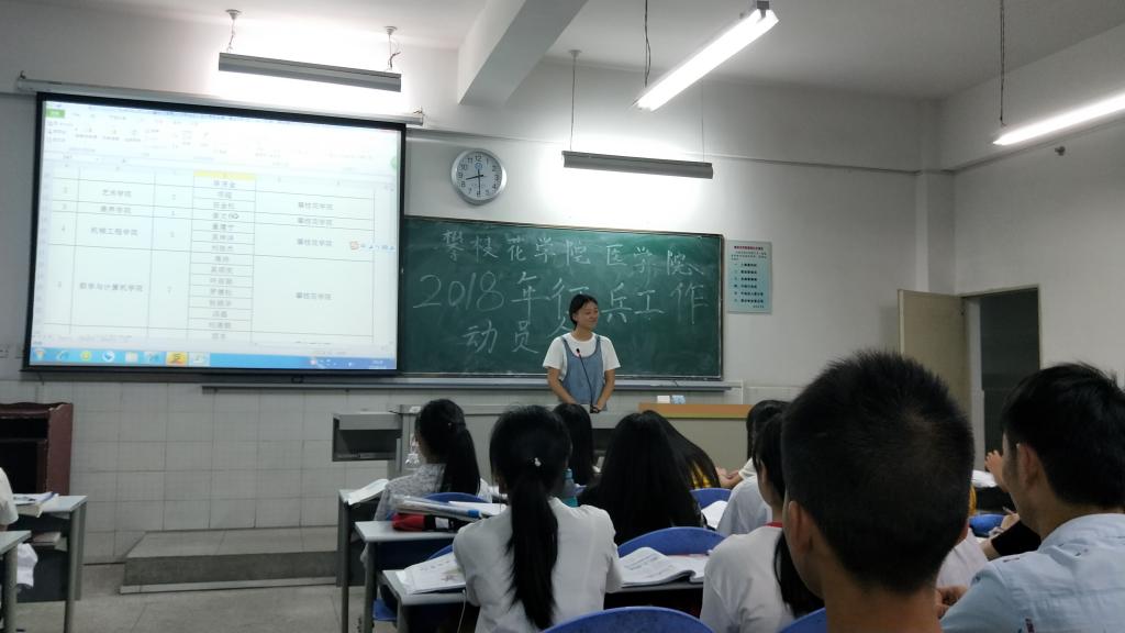 为加强大学生应征入伍政策的宣传教育,引导在校大学生立志投身国防建设,2018年3月20日晚,医学院2017级临床医学专业同学以主题班会的形式开展了2018年大学生征兵动员大会。