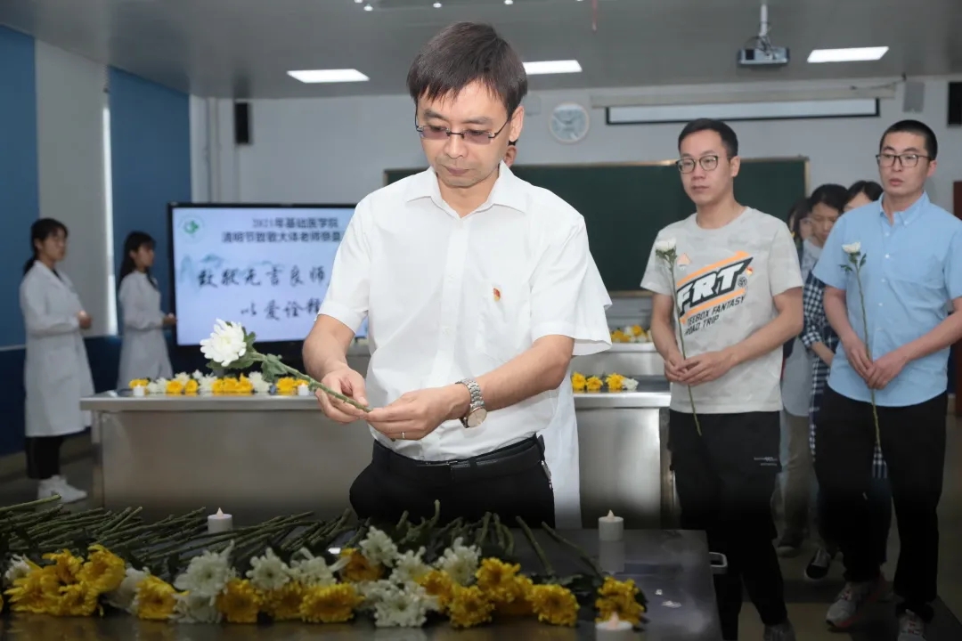 4月4日上午,我院在医学实验中心解剖楼举行“致敬无言良师 以爱诠释生命”清明祭奠活动。攀枝花市红十字会会长岑忠兰、我院党委书记李东及基础医学院师生代表200余人参与了本次活动。