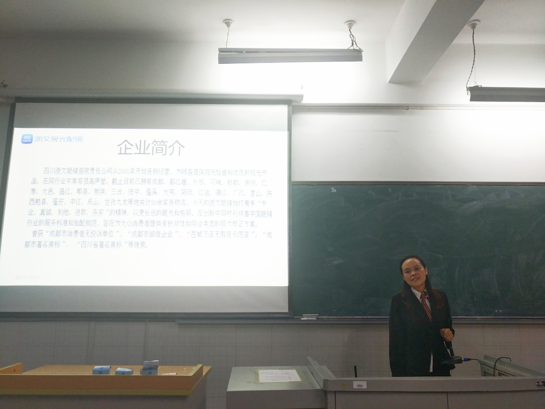 | 浙文眼镜公司人力资源总监陈莉蓉为我院学生进行宣讲 |