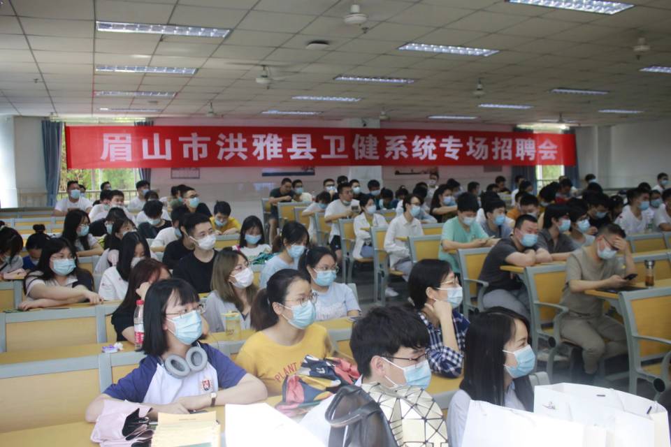 5月9日上午,医学院在笃行楼J1-1举办了眉山市洪雅县卫健系统专场招聘会,基础医学院院长赵牧、副院长徐万宇、基础医学院教师代表及2017级临床医学专业近160余名毕业生参加了本次招聘会。